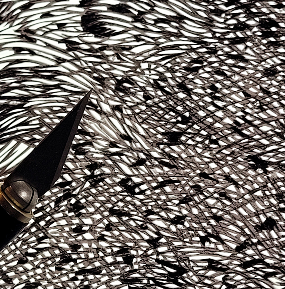 C’est un long travail de réflexion car chaque traits de crayons doivent être pensés pour la découpe.